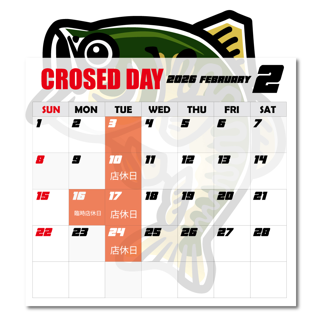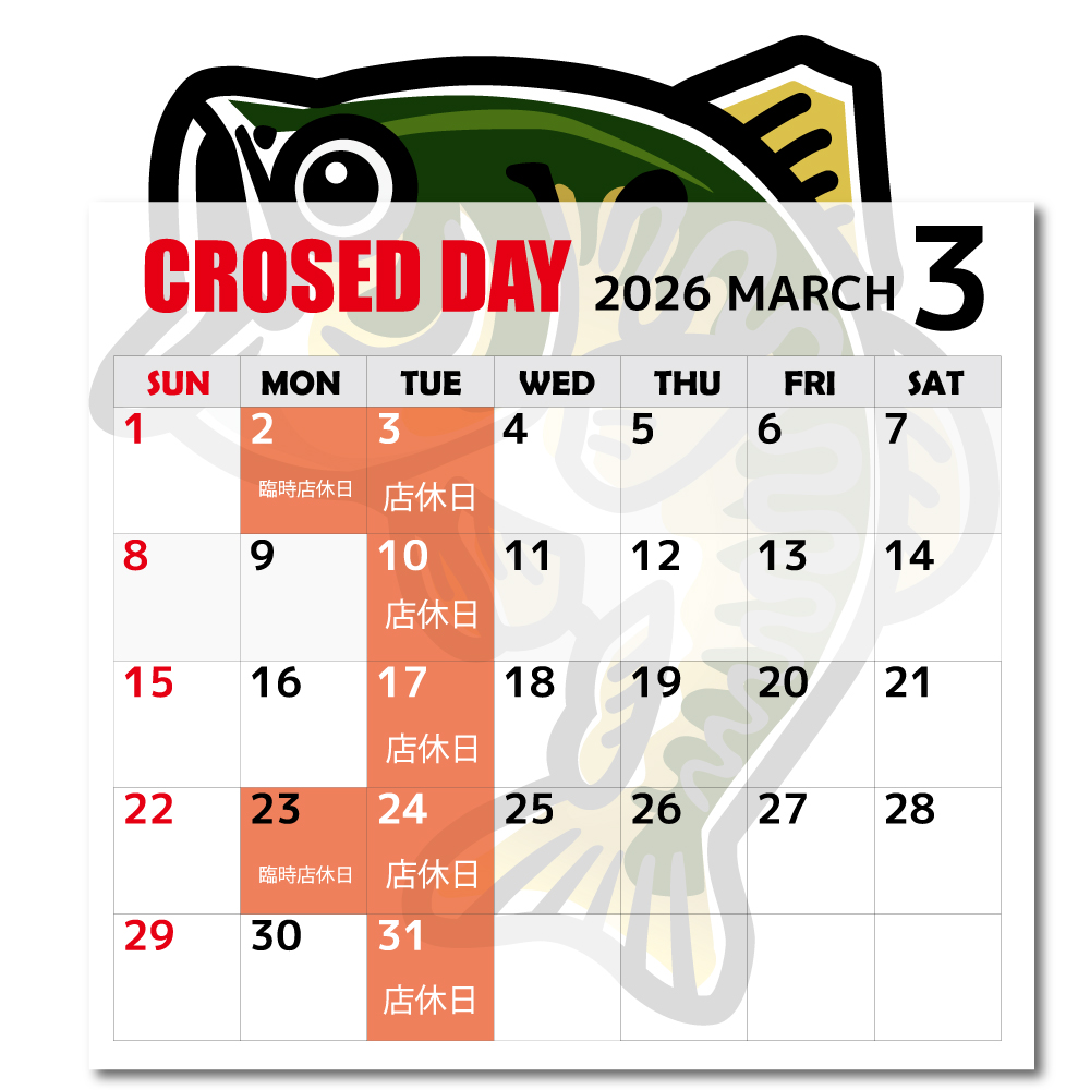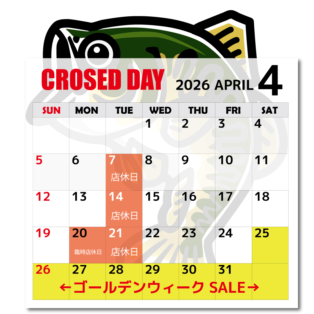 当店舗では広大な店内に、バス釣りのタックルを始め、ソルトゲーム、淡水、海水の釣り道具全般を幅広く取り扱っております。