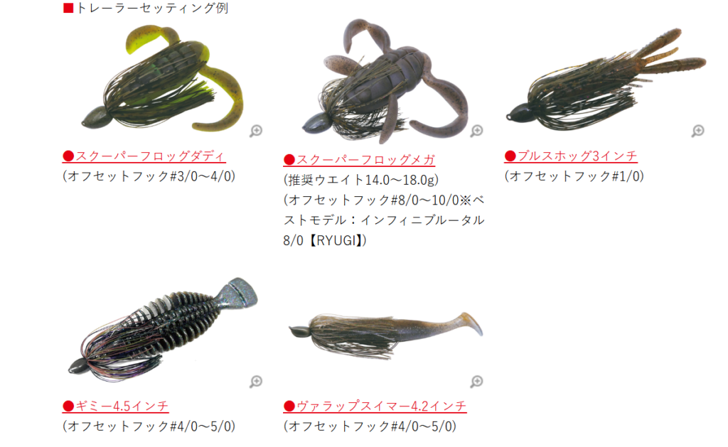 カバーからのすり抜けが良い、先尖りで滑らかなシェイプ。 スイミング姿勢やボトムでの安定性に長け、細かなロッド操作にもレスポンスよく反応する重心バランス。トレーラーのベストアクションを引き出します。